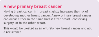 People who have had breast cancer also have a slightly higher risk of developing a new primary breast cancer. This is different to a recurrence.