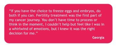 If you were not offered an appointment with a fertility specialist before your treatment started, ask your treatment team to refer you as soon as possible. This will help you get the support you need when your treatment finishes.