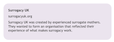You might also find it useful to talk to one of the organisations listed at the end of this booklet. As well as offering emotional support, they may be able to offer information on other options such as surrogacy, adoption or fostering.